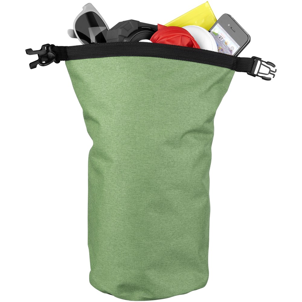 Een waterdichte tas die geweldig is voor buiten. De rolsluiting met plastic gesp zorgt ervoor dat waardevolle spullen droog en veilig worden bewaard. Kan gemakkelijk aan een tas of riem worden bevestigd. Inhoudcapaciteit 5 liter.