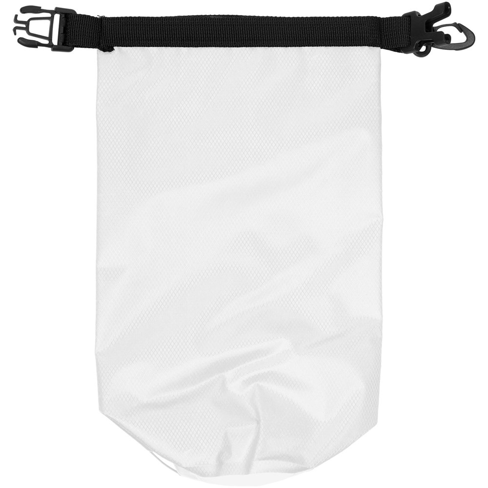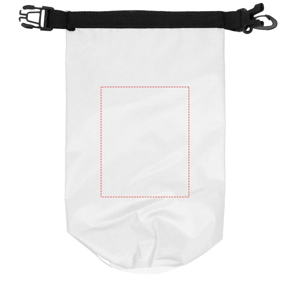Een waterdichte tas die geweldig is voor buiten. De rolsluiting met plastic gesp zorgt ervoor dat waardevolle spullen droog en veilig worden bewaard. Kan gemakkelijk aan een tas of riem worden bevestigd. Inhoudcapaciteit 2 liter.