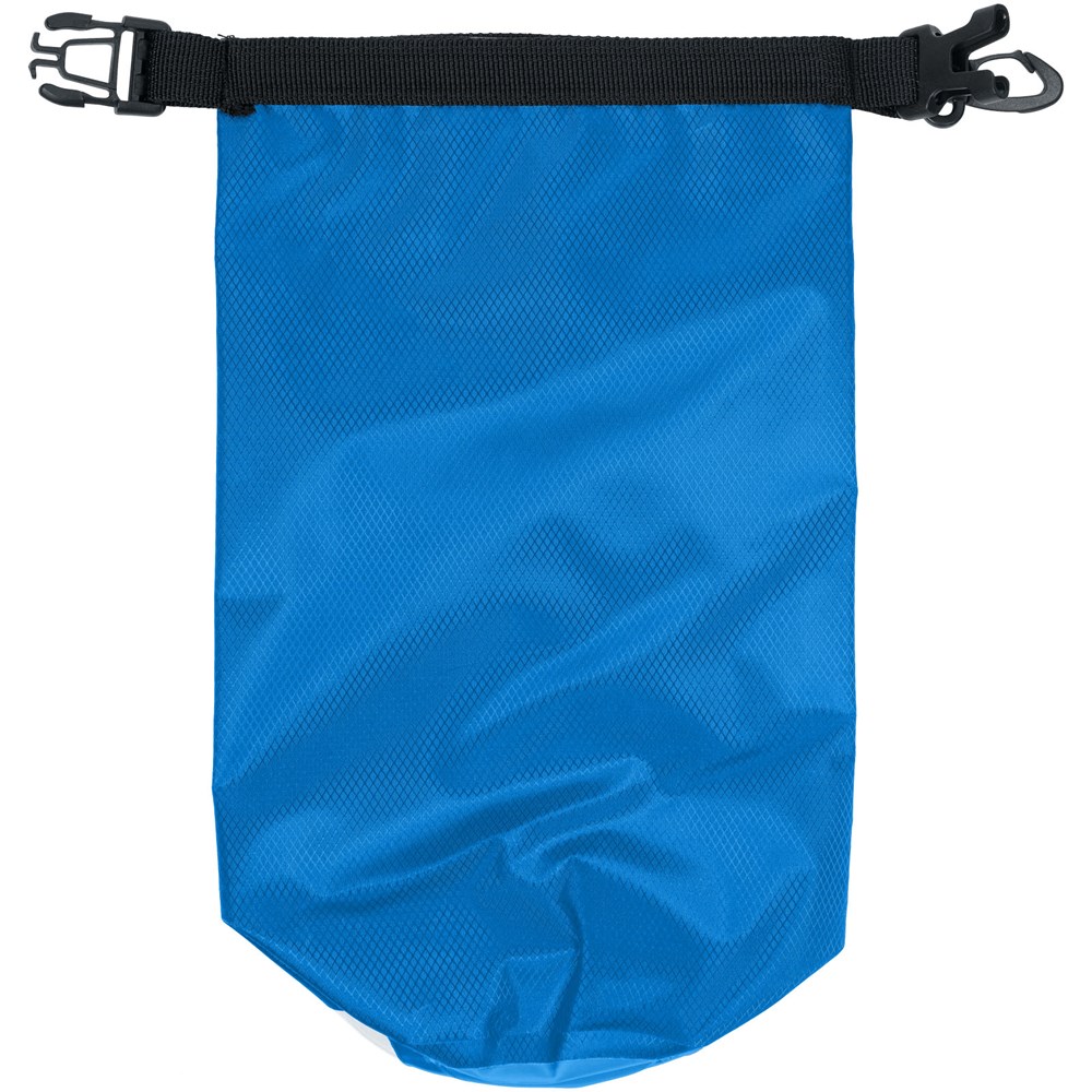 Een waterdichte tas die geweldig is voor buiten. De rolsluiting met plastic gesp zorgt ervoor dat waardevolle spullen droog en veilig worden bewaard. Kan gemakkelijk aan een tas of riem worden bevestigd. Inhoudcapaciteit 2 liter.