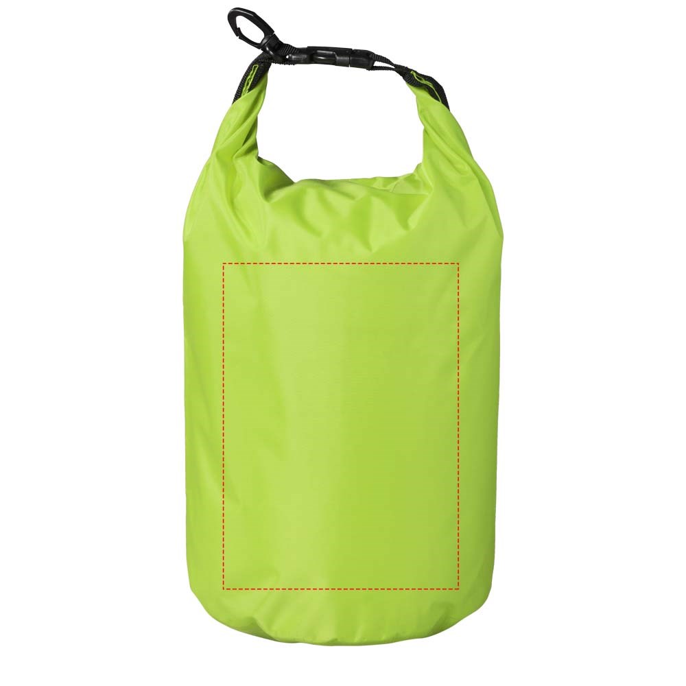 Een waterdichte tas die perfect is voor buiten. De sluiting met opgerolde bovenkant en kunststof gesp zorgt ervoor dat waardevolle spullen droog en veilig bewaard worden. Kan eenvoudig worden bevestigd aan een tas of riem. Wanneer de sluiting is opgerold en vastgemaakt is de inhoudcapaciteit 10 liter.