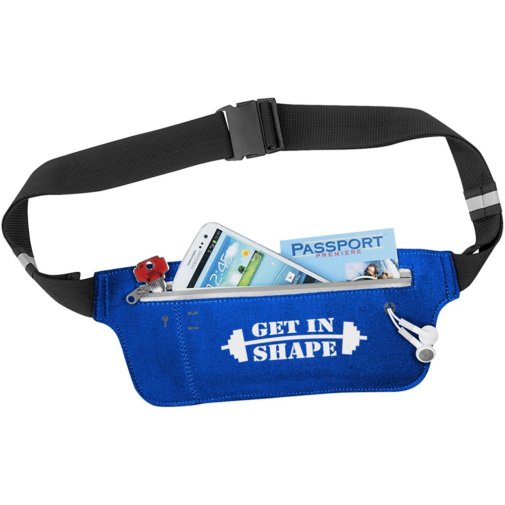 Verstelbare lichtgewicht heupband met ritssluiting. Twee aparte vakken voor sleutels of telefoon. Met handige oortelefoondoorgang.
