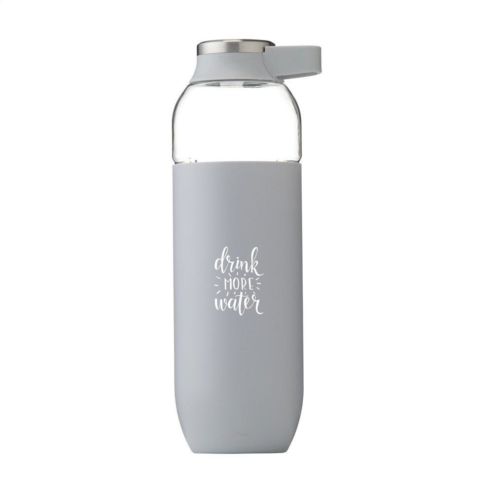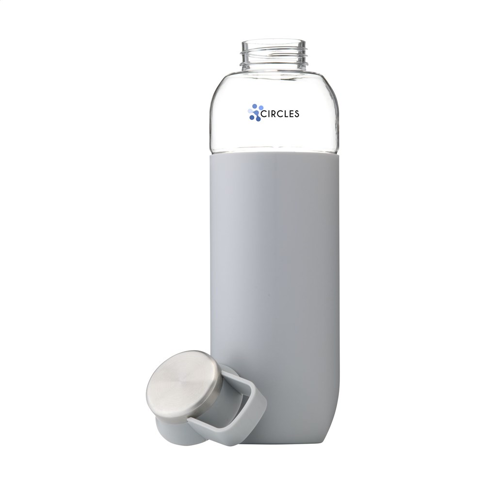 Luxe waterfles van helder, hoogwaardig Eastman Tritan™; BPA-vrij, milieubewust, duurzaam en herbruikbaar. Met opvallend zacht gekleurde PP sleeve. Schroefdop met RVS accent en handige draagring. Lekvrij. Inhoud 740 ml.