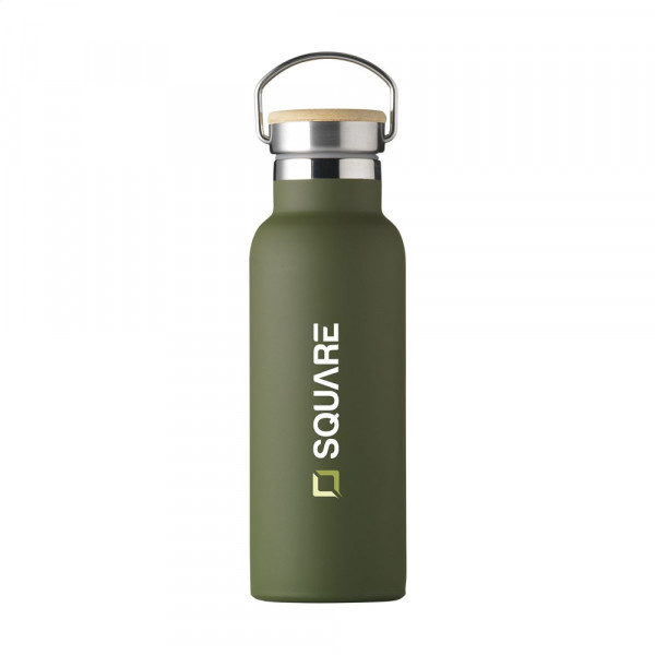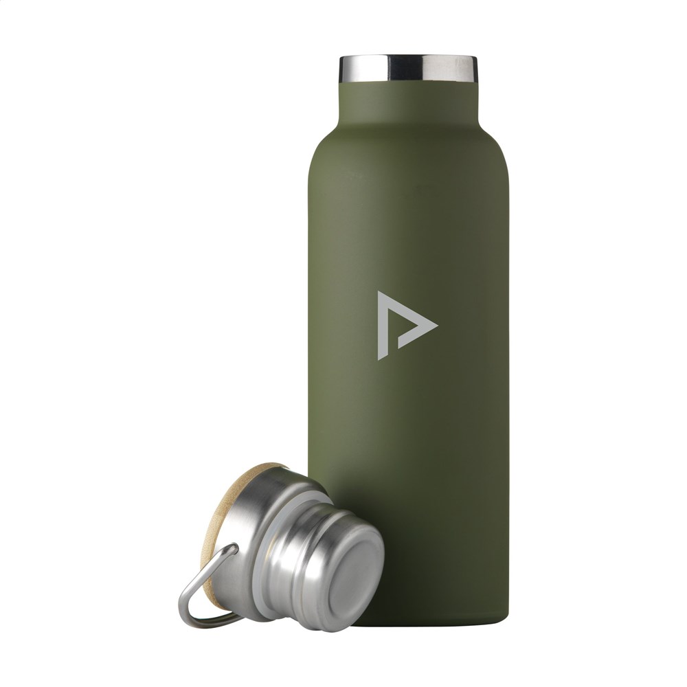 Dubbelwandige, lekvrije RVS waterfles/thermosfles. Vacuüm geïsoleerd. De handige schroefdop is een combinatie van RVS en bamboe. Geschikt voor het op temperatuur houden van koude of warme dranken. Design gebaseerd op de vintage, glazen melkfles. Inhoud 500 ml. Verkrijgbaar in diverse uitvoeringen. Per stuk in doos.