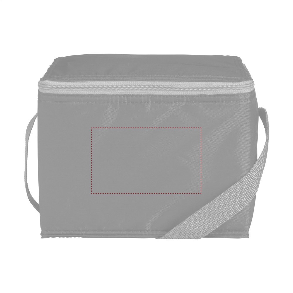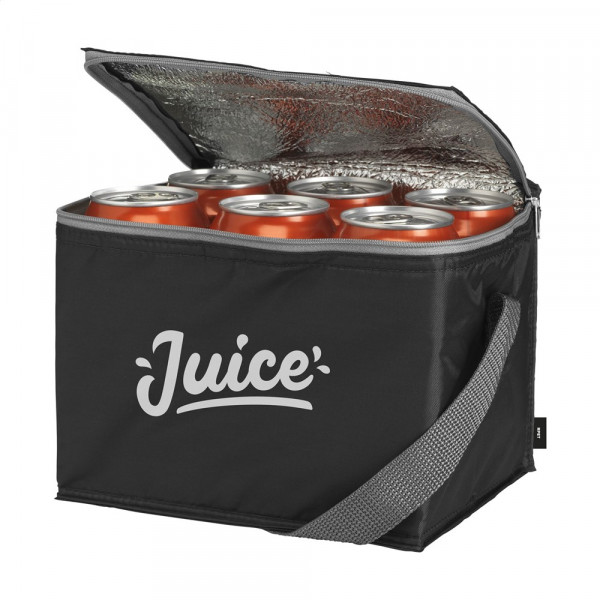 Koeltasje van 210D RPET polyester: gemaakt van gerecyclede PET-flessen. Geschikt voor 6 blikjes drank. Met draagriem.