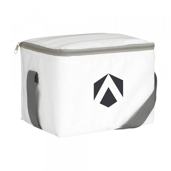 Koeltasje van 210D RPET polyester: gemaakt van gerecyclede PET-flessen. Geschikt voor 6 blikjes drank. Met draagriem.