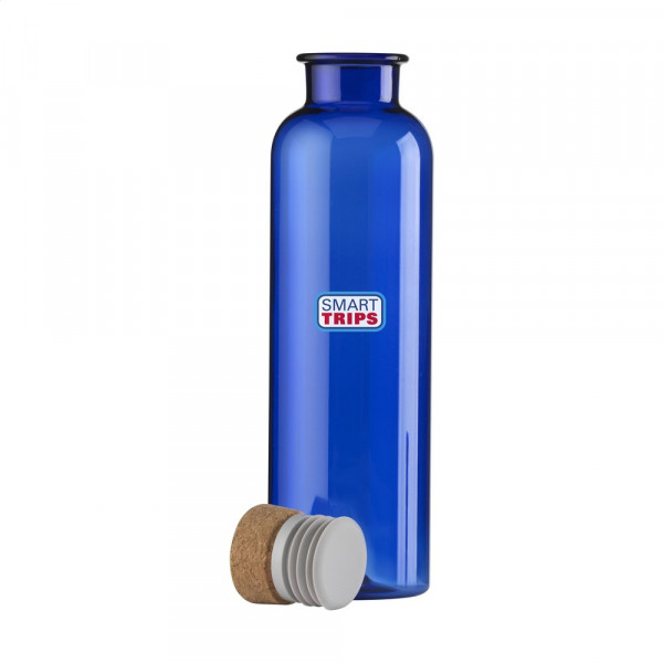 Transparantgekleurde, BPA-vrije waterfles van Eastman Tritan™ materiaal. Met speelse kurken cap. Inhoud 650 ml.