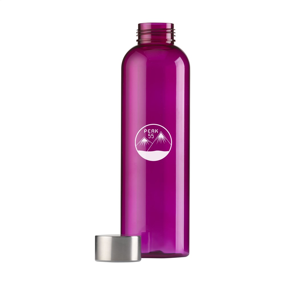 Transparantgekleurde, BPA-vrije waterfles van duurzaam Eastman Tritan™. Met RVS schroefdop. Het slanke design valt direct op en ligt bijzonder prettig in de hand. Lekvrij. Inhoud 650 ml.