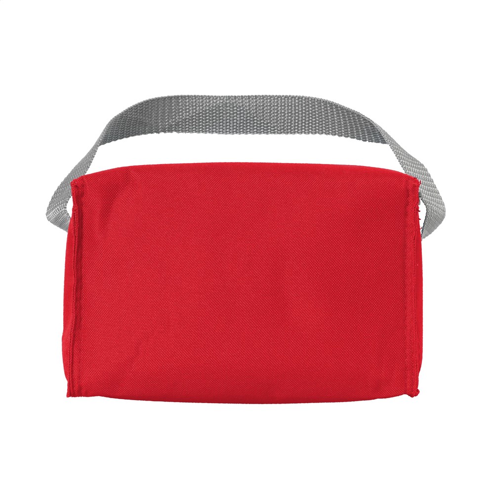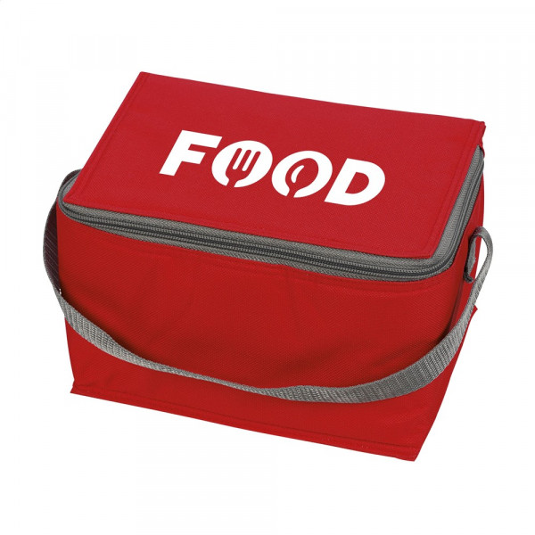 600D polyester koeltasje, geschikt voor 6 blikjes drank. Met draagriem.