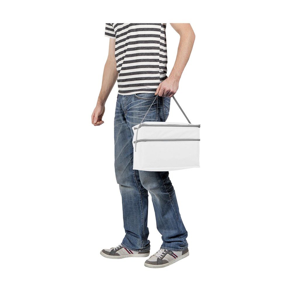600D polyester koeltas met ruim koelvak, extra koelvak met gaasvak en draagriem.