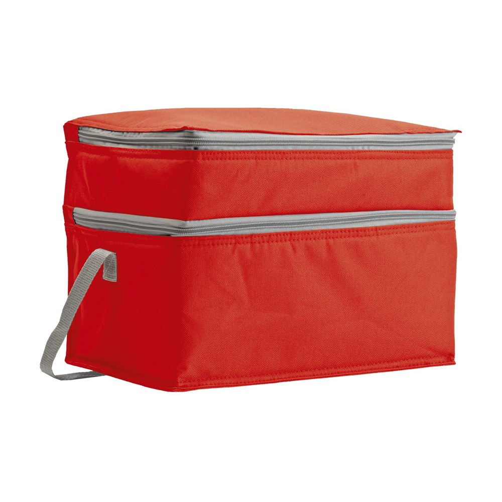 600D polyester koeltas met ruim koelvak, extra koelvak met gaasvak en draagriem.