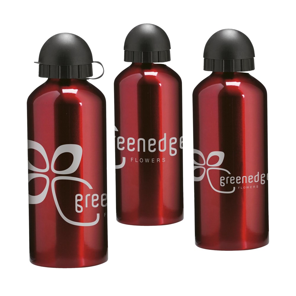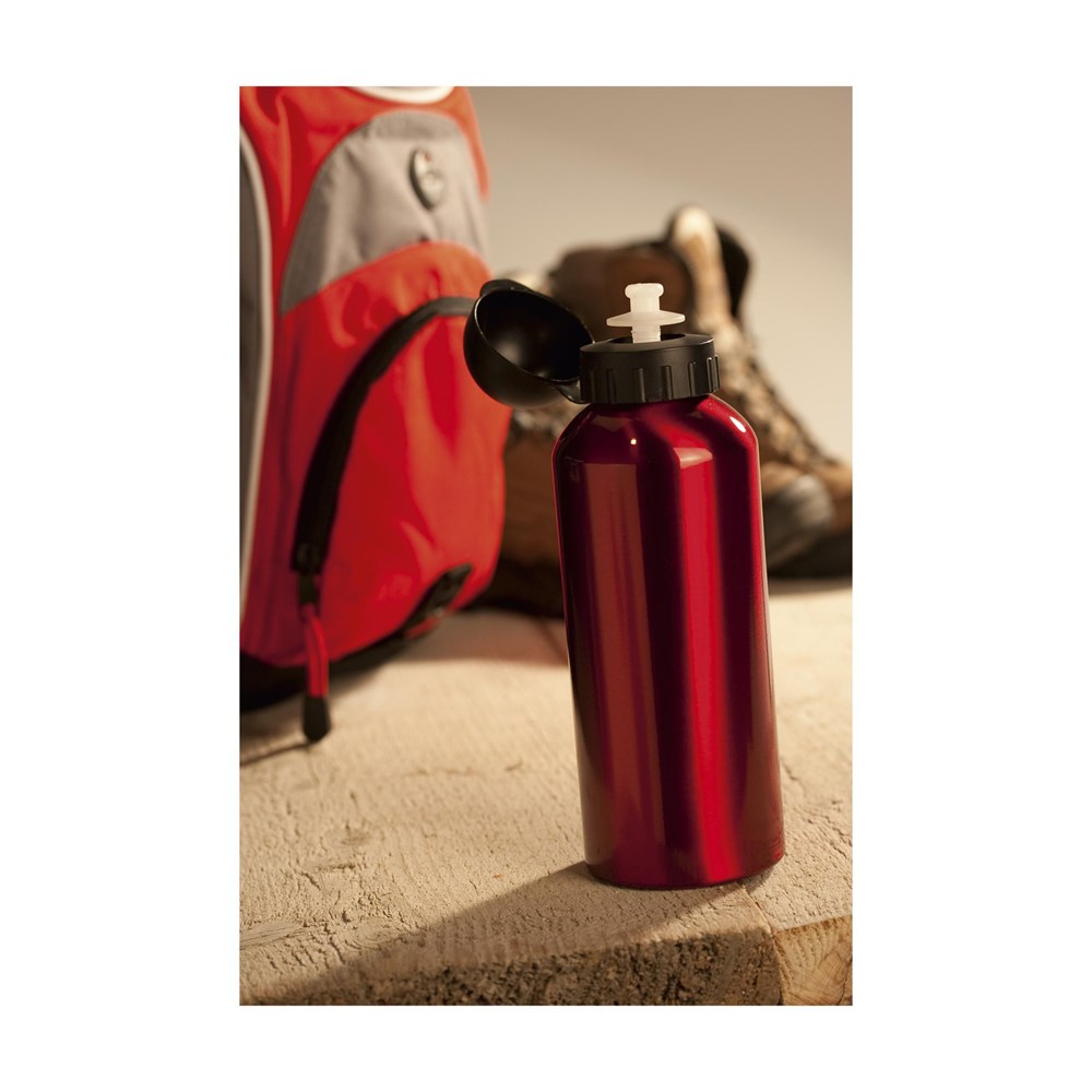 Aluminium bidon met kunststof drinkstop. Inhoud 600 ml. Per stuk in doos.