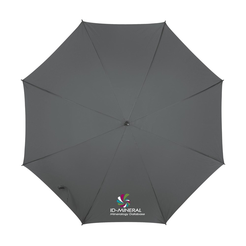 Paraplu met een schermdoorsnede van 120 cm, 190T nylon bespanning, metalen frame en steel, houten handgreep en klittenbandsluiting.