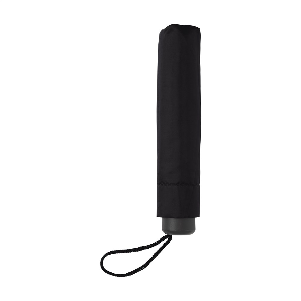 Compacte, inklapbare paraplu met 190 T polyester bespanning, metalen frame, handgreep met lus en opberghoes. Lengte ingeklapt: 17 cm. Afm Ø 92 x 55 cm.