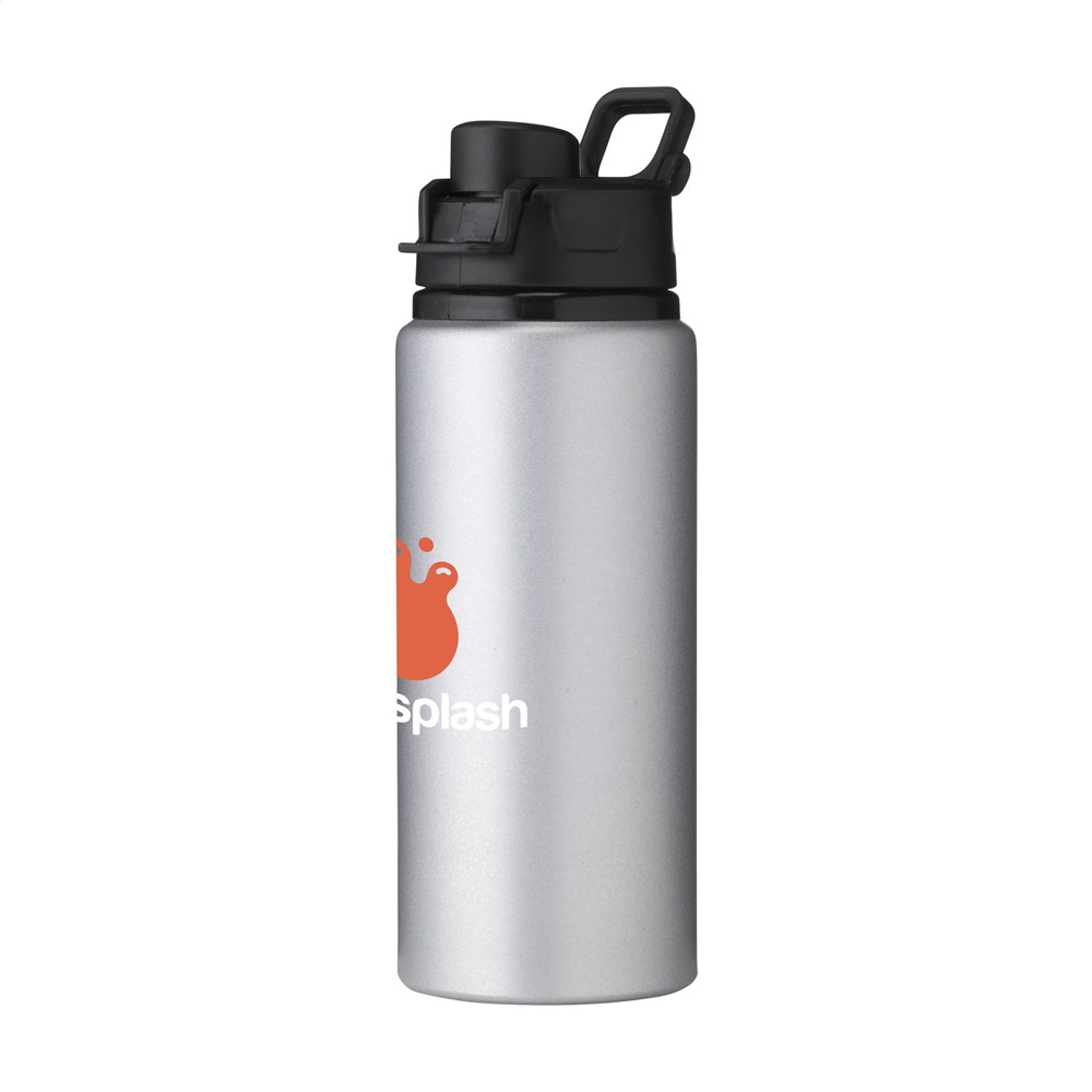 Enkelwandige, aluminium waterfles met metallic matte poedercoating. De fles heeft een PP schroefdop met afsluitbare drinkopening en handige draaglus. Lekvrij. Inhoud 700 ml.