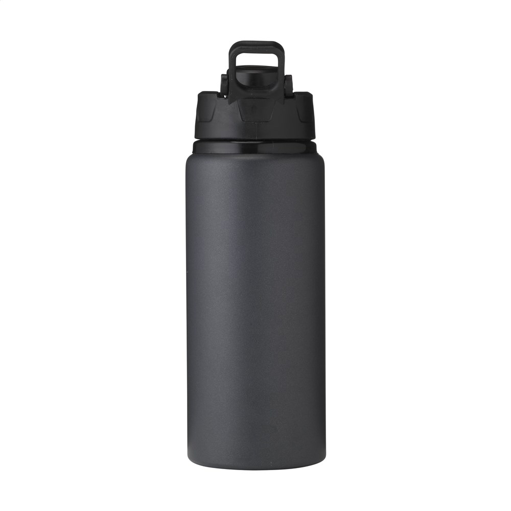 Enkelwandige, aluminium waterfles met metallic matte poedercoating. De fles heeft een PP schroefdop met afsluitbare drinkopening en handige draaglus. Lekvrij. Inhoud 700 ml.