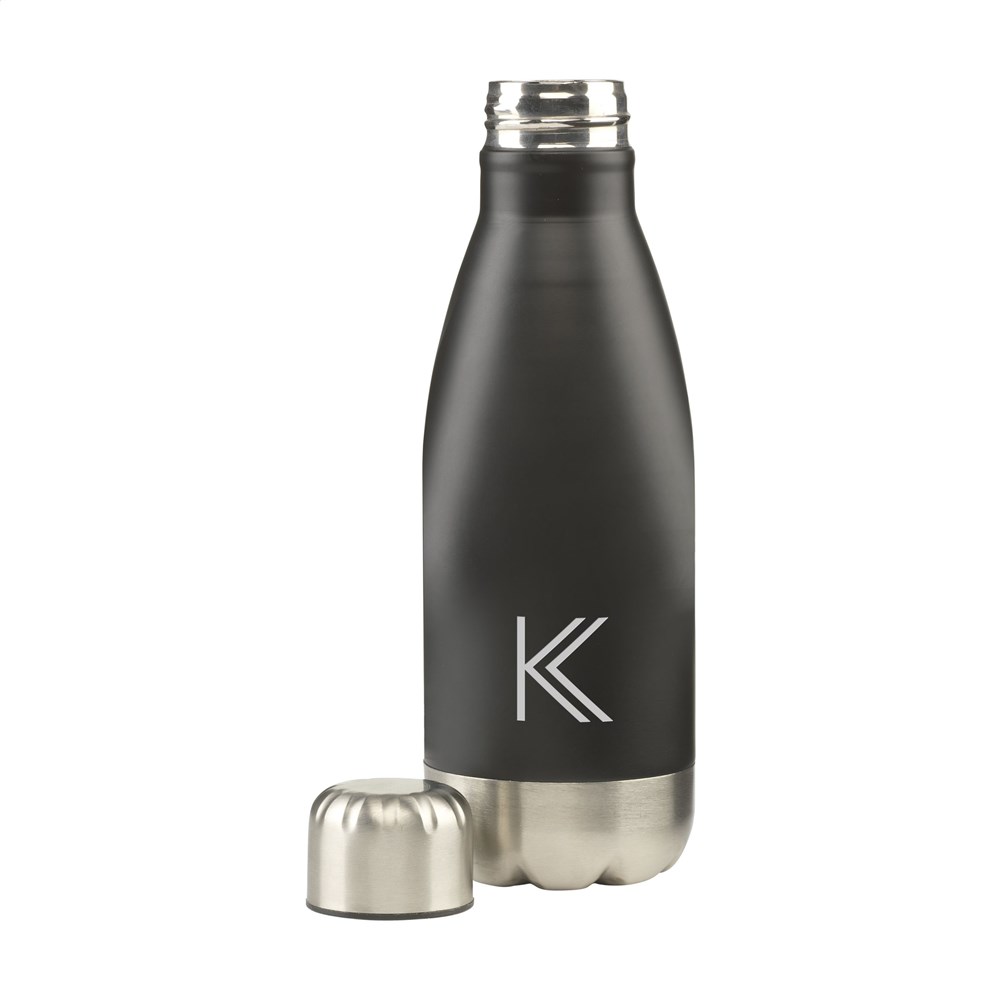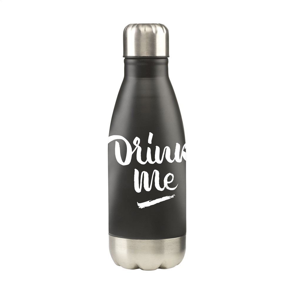 Dubbelwandige, vacuüm geïsoleerde, RVS waterfles/thermosfles. Met lekvrije schroefdop. Geschikt voor het op temperatuur houden van koude of warme dranken. Inhoud 350 ml. Per stuk in doos.