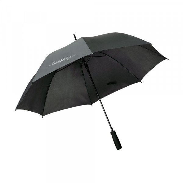 Paraplu met automatische telescoopvering. 190T polyester bespanning, glasvezel frame, metalen steel, soft foam handgreep en klittenbandsluiting.