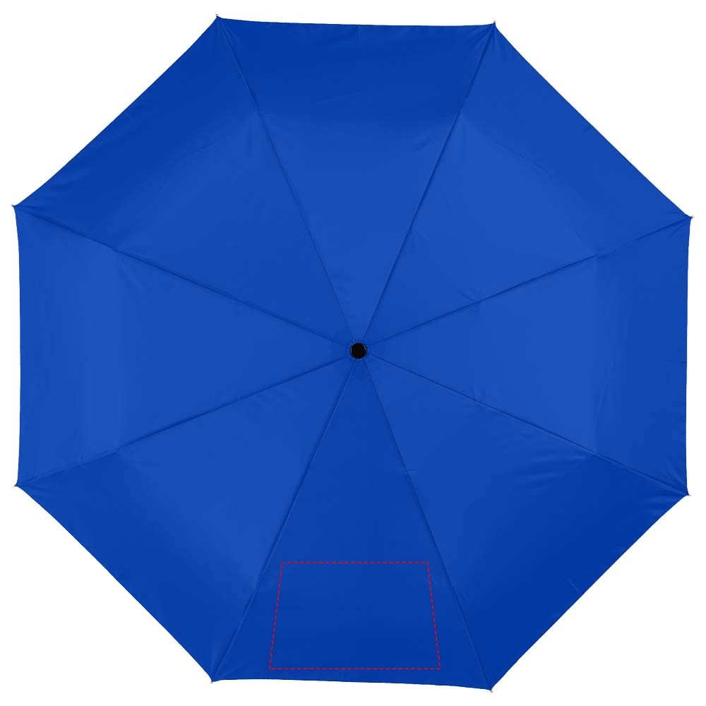 21,5" 3-sectie automatische paraplu. Metalen schacht en baleinen en kunststof handvat. Geleverd met een hoes.