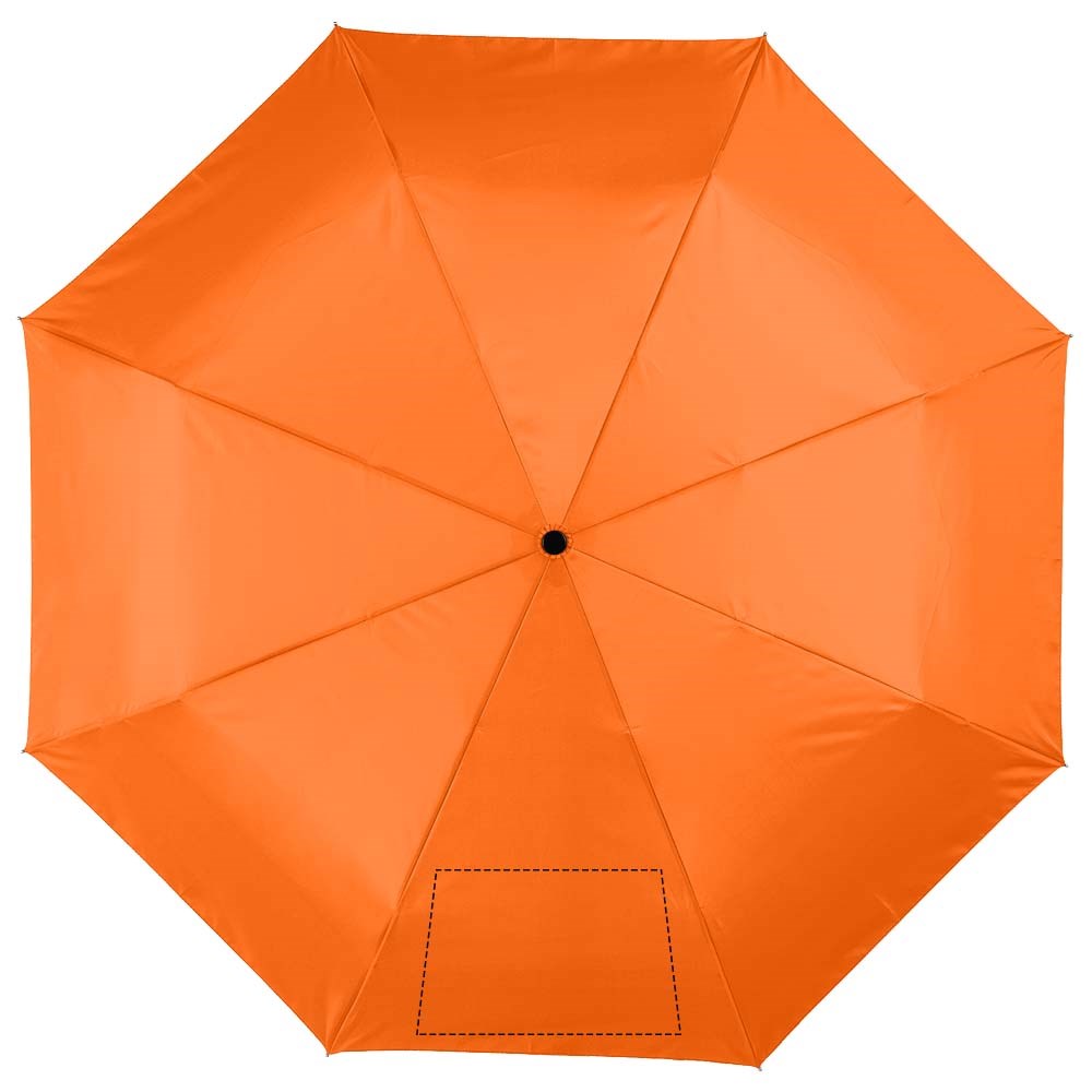 21,5" 3-sectie automatische paraplu. Metalen schacht en baleinen en kunststof handvat. Geleverd met een hoes.