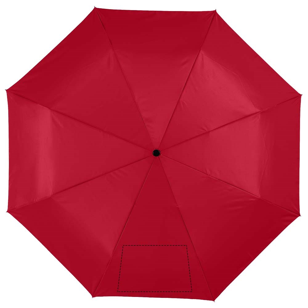 21,5" 3-sectie automatische paraplu. Metalen schacht en baleinen en kunststof handvat. Geleverd met een hoes.