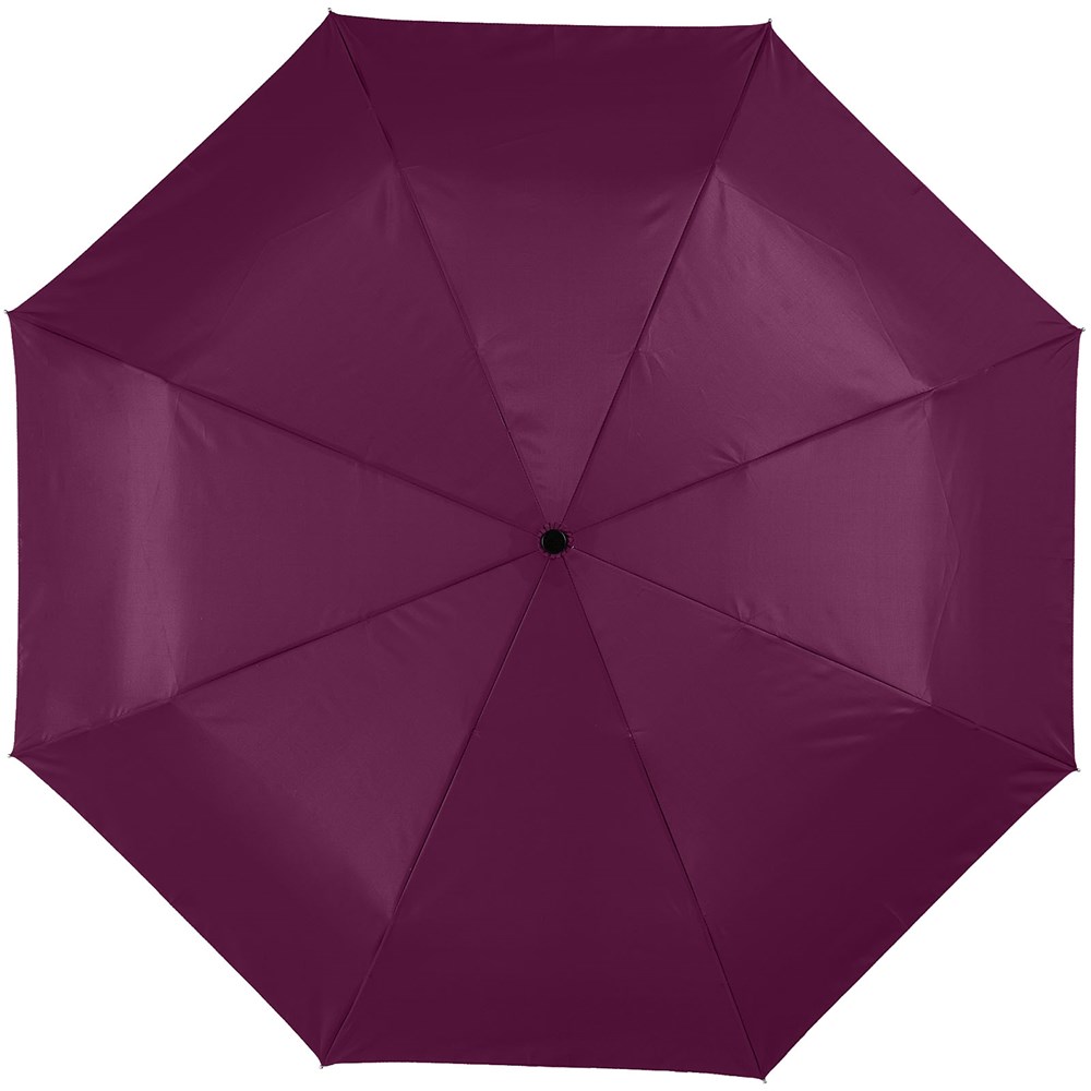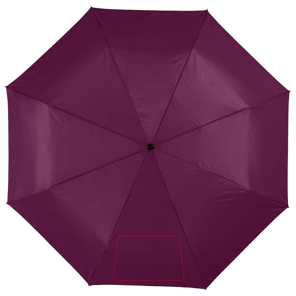 21,5" 3-sectie automatische paraplu. Metalen schacht en baleinen en kunststof handvat. Geleverd met een hoes.