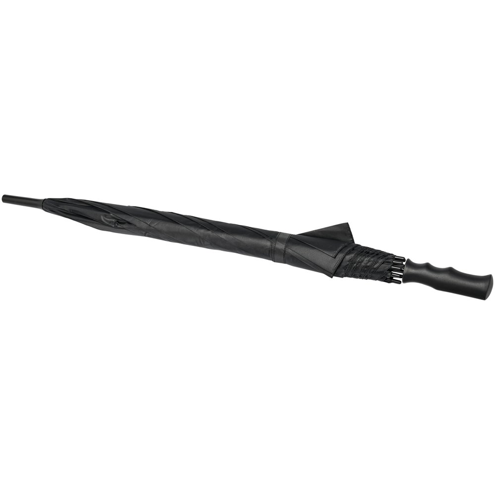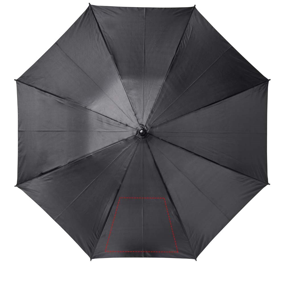 Automatisch openende paraplu met een polyester scherm. Hij heeft een stevige metalen schacht en gepatenteerd hoogwaardig frame volledig uit glasvezel en biedt maximale flexibiliteit bij winderige omstandigheden. Rechte kunststof handgreep, punten en spits. Verkrijgbaar in de meest diverse moderne kleuren en met een groot decoratievlak.