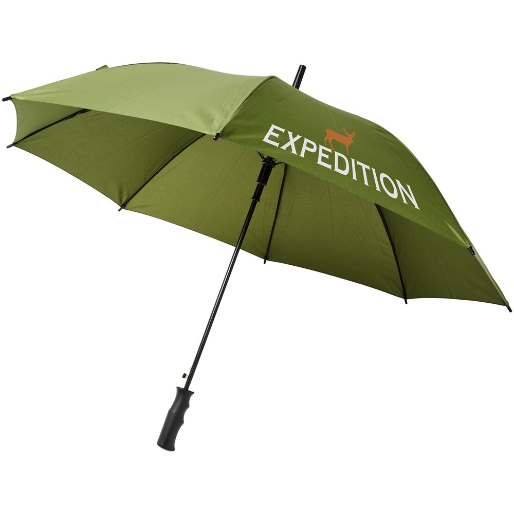 Automatisch openende paraplu met een polyester scherm. Hij heeft een stevige metalen schacht en gepatenteerd hoogwaardig frame volledig uit glasvezel en biedt maximale flexibiliteit bij winderige omstandigheden. Rechte kunststof handgreep, punten en spits. Verkrijgbaar in de meest diverse moderne kleuren en met een groot decoratievlak.