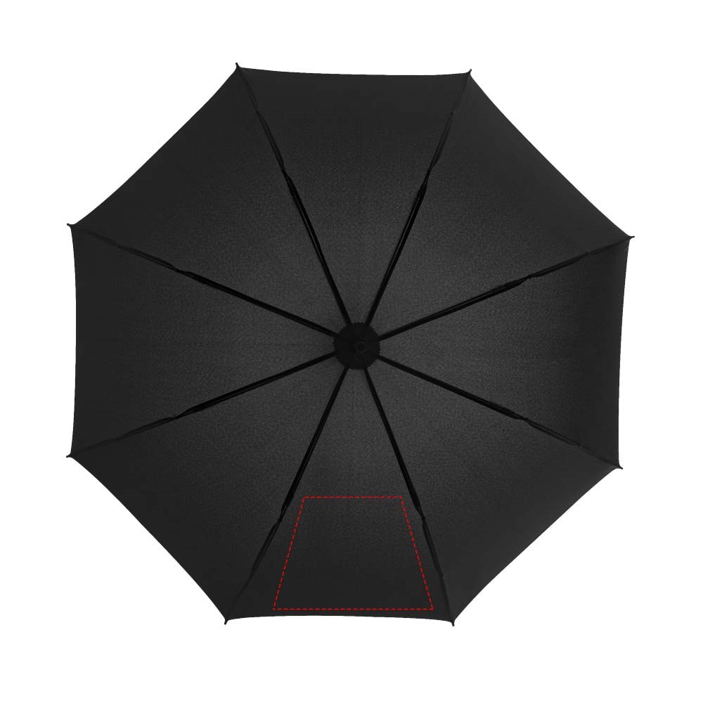 Automatische 23" stormparaplu met gekleurde glasvezel schacht en glasvezel baleinen. Kleur matching stiksels op de paraplu sluit band. Winddicht systeem. Geleverd met een hoes. Exclusief ontwerp.