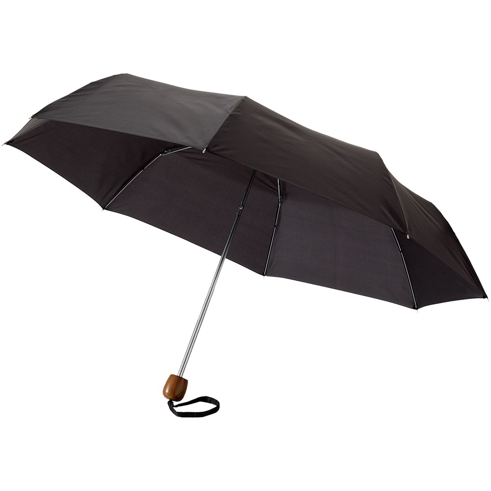 21.5" Paraplu met metalen frame, metalen baleinen en kunststof handvat. Geleverd met een hoes.