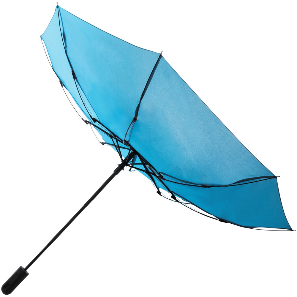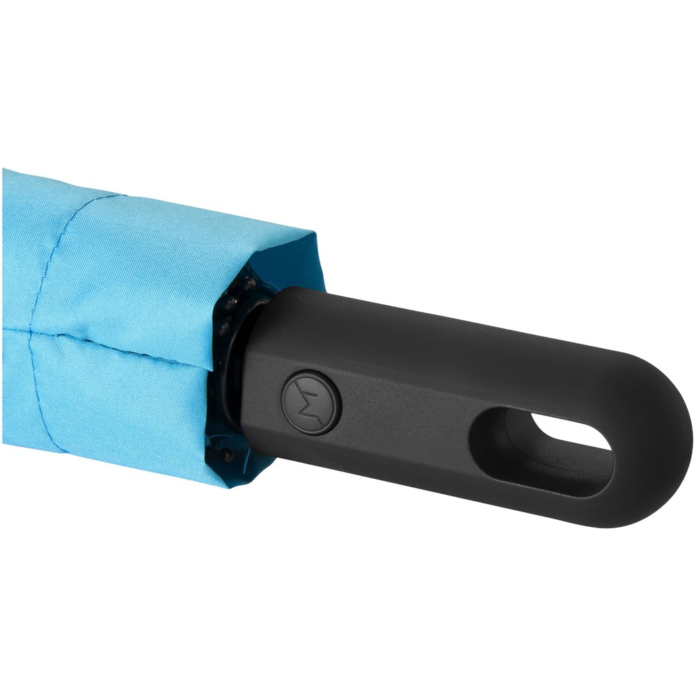 Exclusief ontworpen automatisch openende en automatisch sluitende 3-sectie paraplu. Zwart metalen schacht, glasvezel baleinen en een met rubber beklede kunststof handvat. Opvouwbaar tot 31 cm. Geleverd met een bijpassende hoes in de kleur van het scherm.