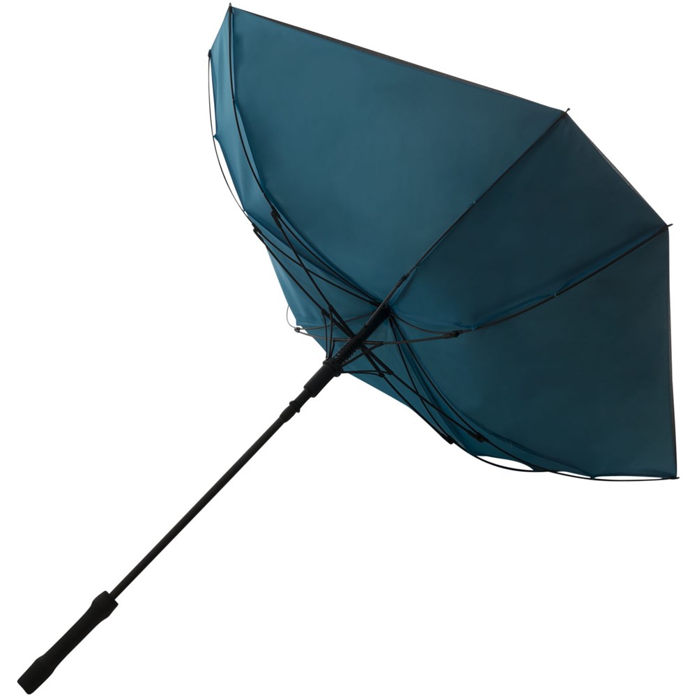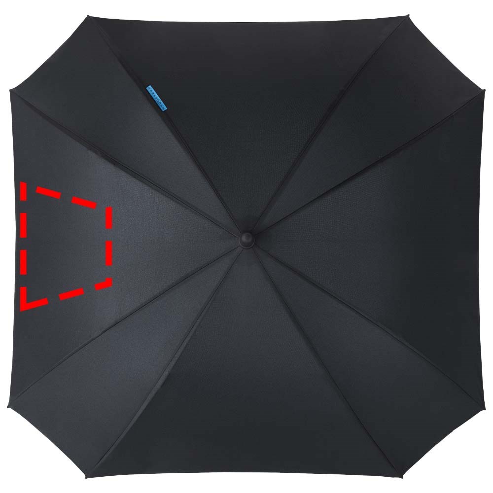 Unieke, exclusief ontworpen vierkante paraplu. Automatisch openend. Binnenkant scherm in contrastkleur. Glasvezel schacht en baleinen en handvat met rubberlaag. Geleverd met een zwarte hoes.