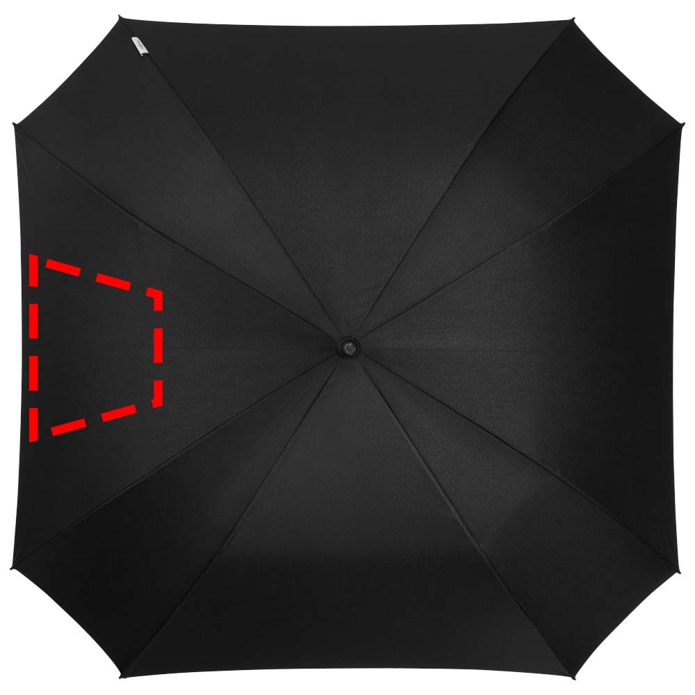 Unieke, exclusief ontworpen vierkante paraplu. Automatisch openend. Binnenkant scherm in contrastkleur. Glasvezel schacht en baleinen en handvat met rubberlaag. Geleverd met een zwarte hoes.