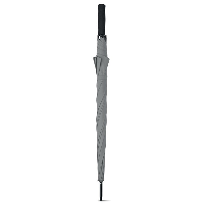 27 Inch paraplu van pongee met EVA handvat. Zwart metalen frame met kunststof zwarte uiteinde. Opent automatisch.