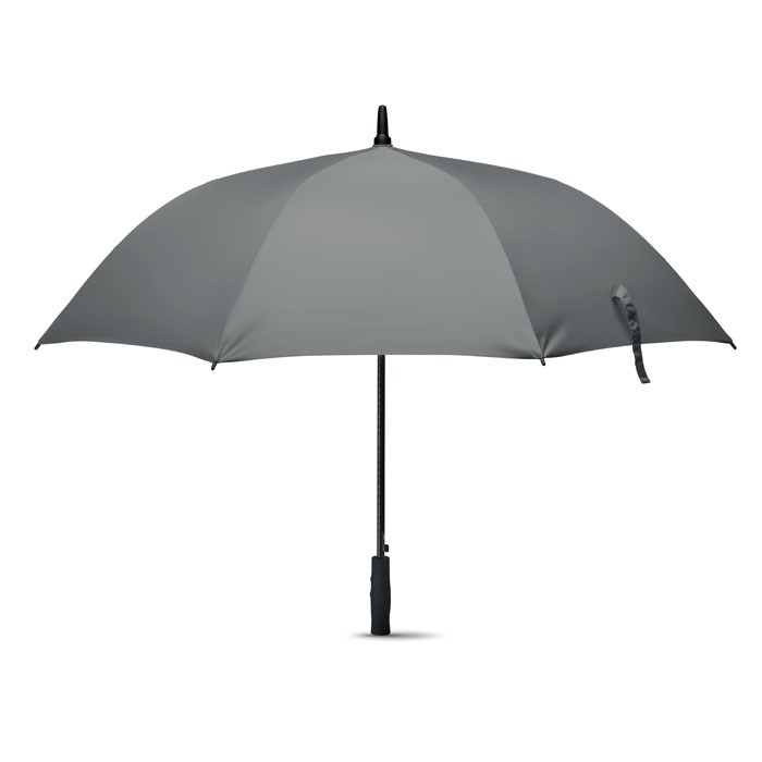 27 Inch windbestendige paraplu met 190T pongee doek, fiberglas stok en baleinen en handmatig open/sluit-systeem. Met zwart kunststof tips en top, recht handvat van rubberized ABS.