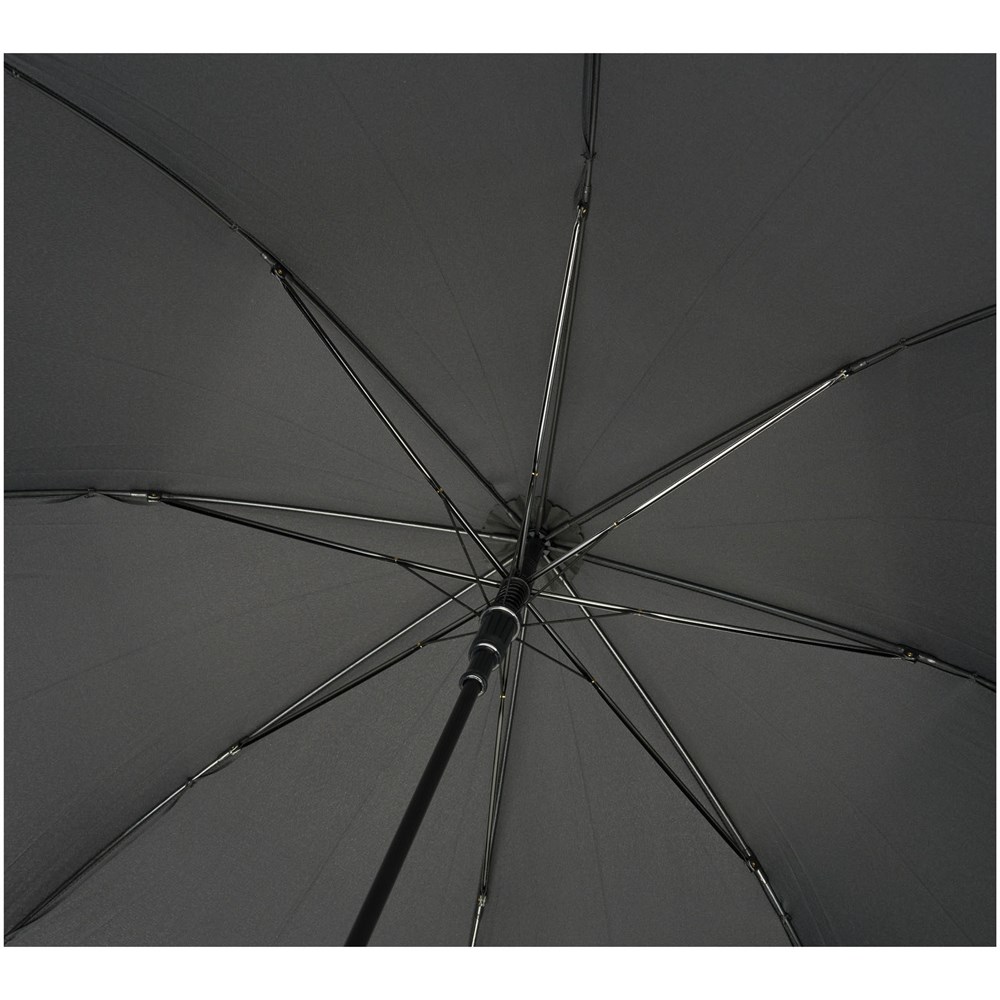 Automatisch openende paraplu met een gerecycled PET pongé polyester scherm. De stevige metalen schacht en het hoogwaardige frame met glasvezel ribben bieden flexibiliteit bij winderige omstandigheden. In combinatie met het houten handvat, de punten en het gerecyclede PET pongé polyester scherm biedt het model een duurzame keuze. Verkrijgbaar in de meest diverse moderne kleuren met een groot decoratievlak op elk van de panelen en ook de houten handgreep kan worden gedecoreerd.