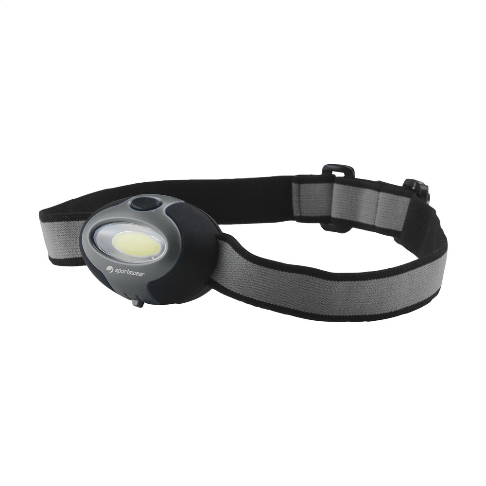 ABS hoofdlampje met COB LED. Geeft enorm fel, wit licht. Aan verstelbare, elastische band. Uiterst geschikt voor buitenactiviteiten in het donker. Incl. celbatterijen. Per stuk in doosje.