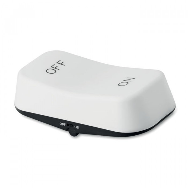 Grote LED lamp in de vorm van een AAN-UIT-knop. De lamp functioneert ook als een aan-/uitknop. Exclusief 3 AA batterijen.