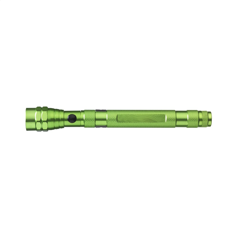 RVS zaklamp met 3 felwitte, energiezuinige LED-lampjes. Voorzien van een telescoopfunctie, uitschuifbaar tot 56,5 cm, flexibele, magnetische kop en bevestigingsclip. Incl. batterijen. Per stuk in doos.