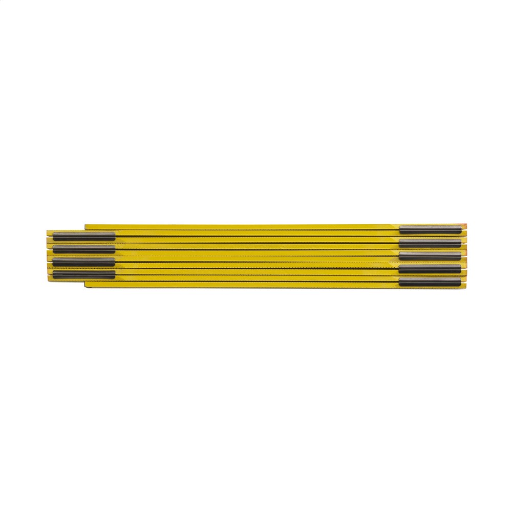 Professionele duimstok van gelakt hout, met een lengte van 2 meter/78 inches. Aanduiding in centimeters aan de ene zijde en inches aan de andere zijde. Geijkt volgens Europese normen.