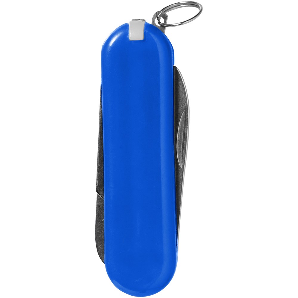 Zakmes met mes, schaar met veermechanisme, pincet, tandenstoker, nagelvijl en mini-sleutelring.
