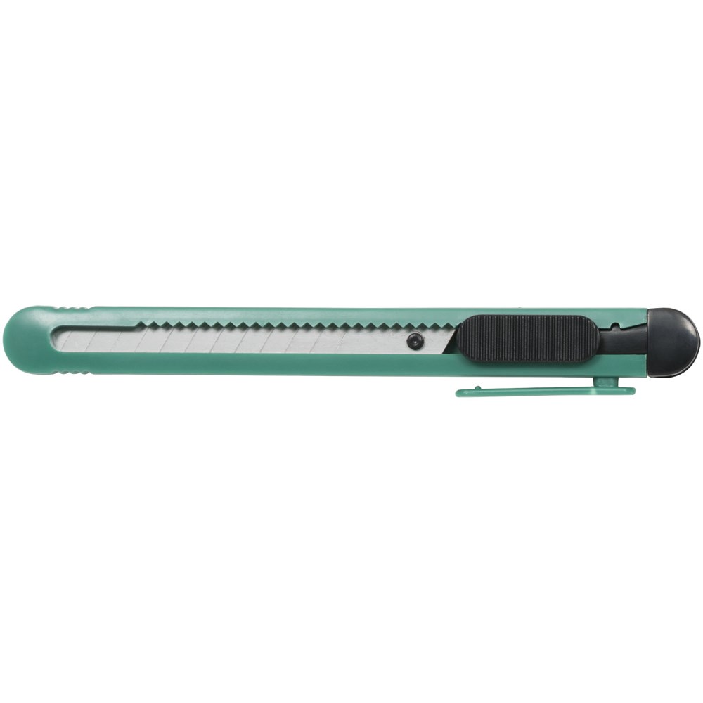 Inschuifbaar mes met verwisselbaar 80 x 9 mm, 12 segment snap-off mes. Geïntegreerd snijmes en zakclip.