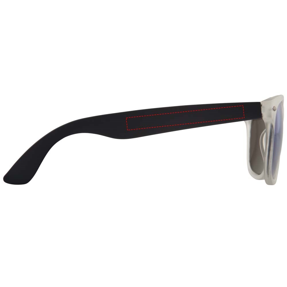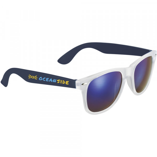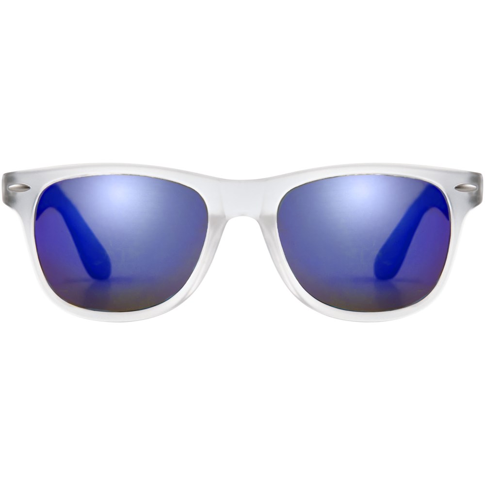 Retro design glazen met mat witte frame, categorie 3 spiegellenzen in 3 verschillende tinten en bijpassend kleur tinten. Conform EN ISO 12312-1 en met UV400.