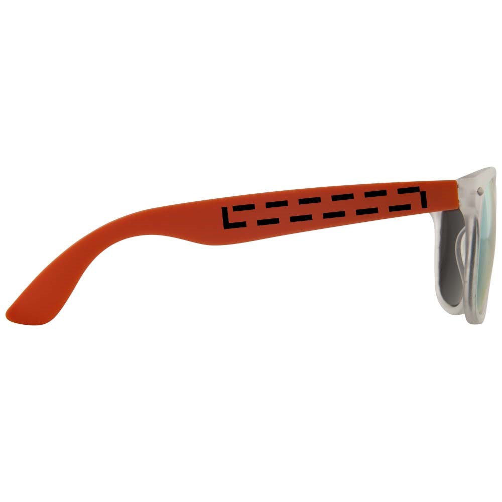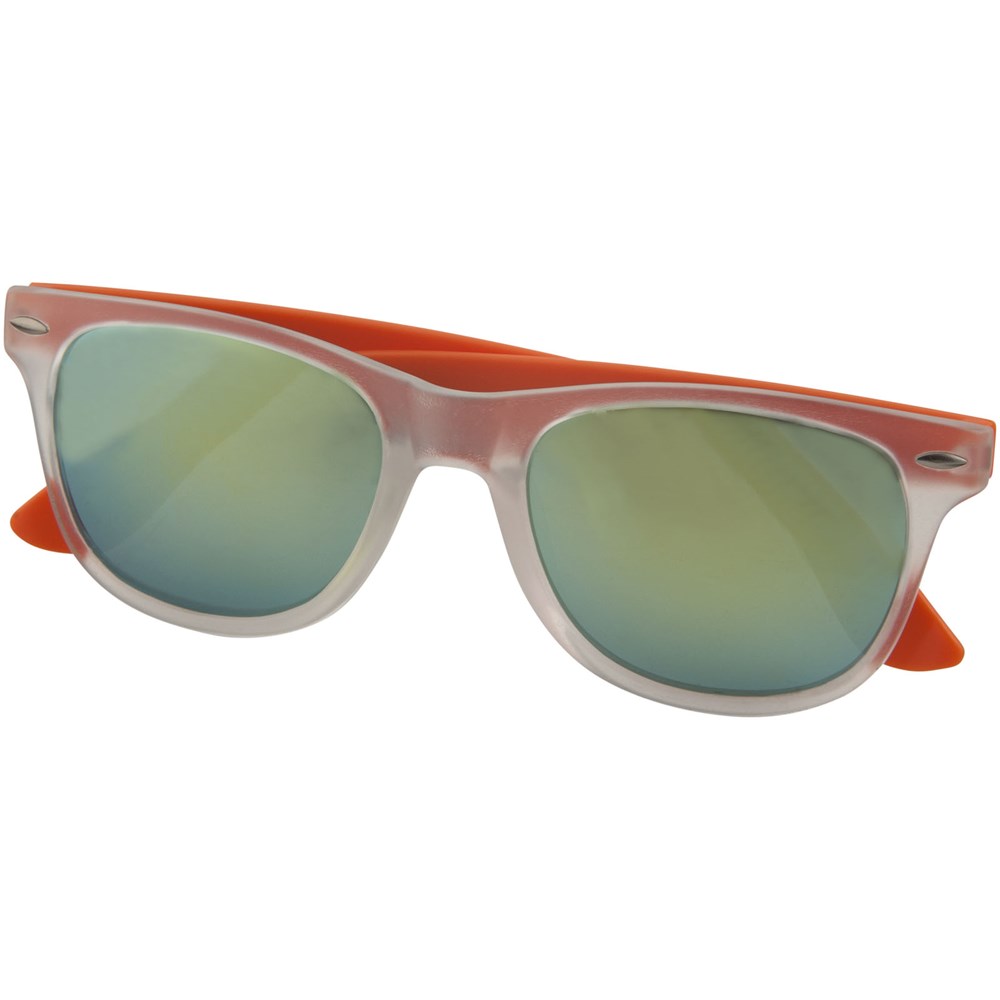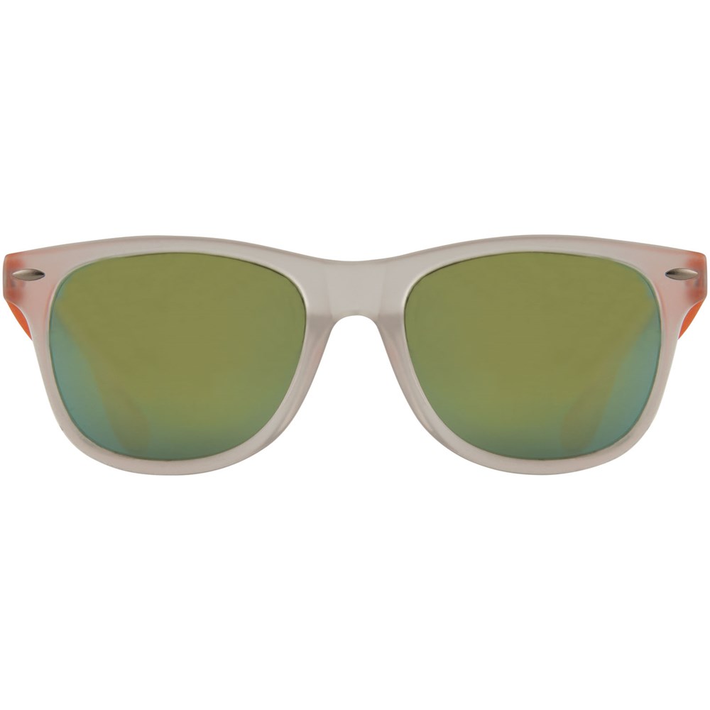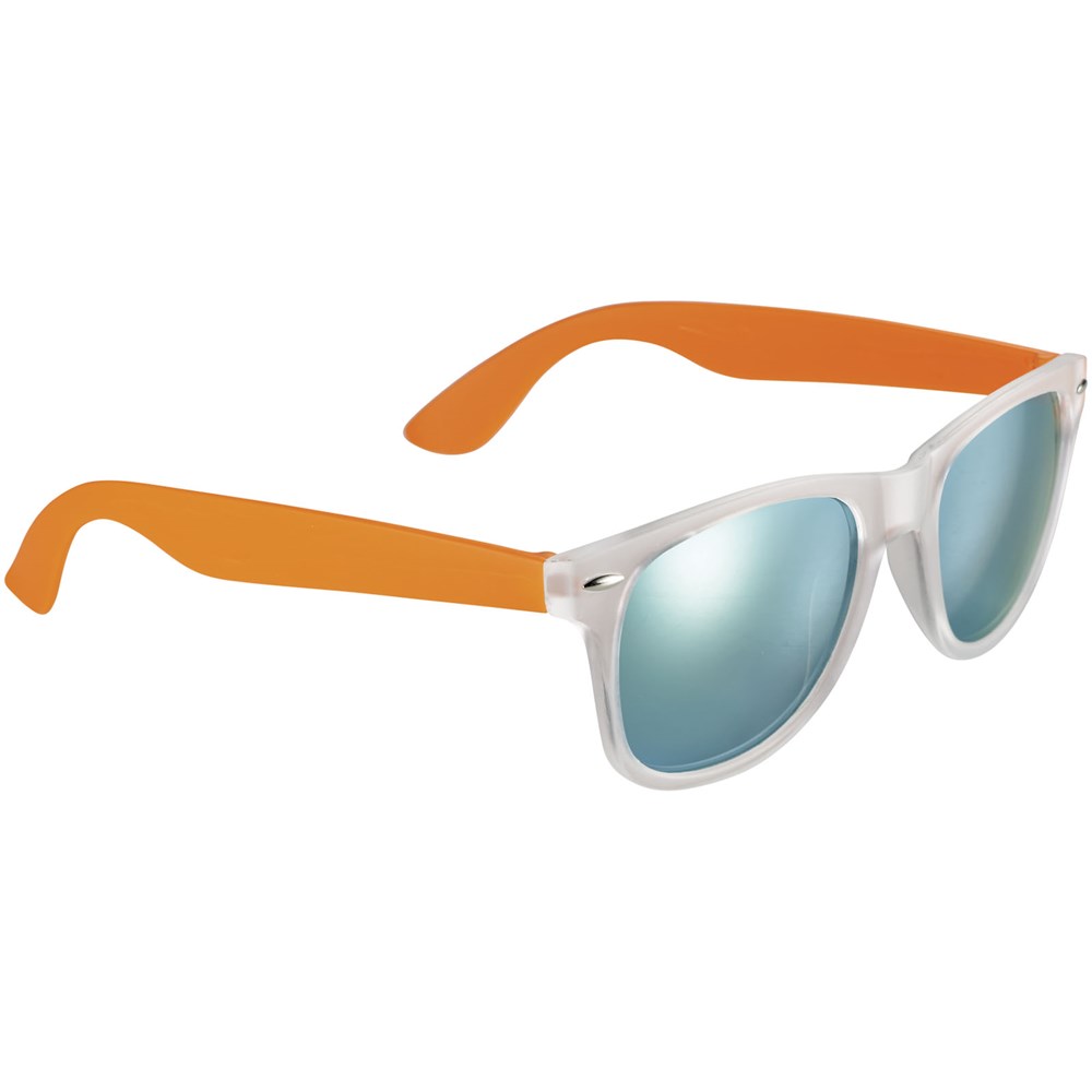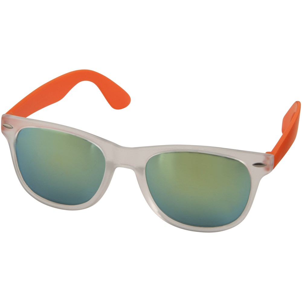 Retro design glazen met mat witte frame, categorie 3 spiegellenzen in 3 verschillende tinten en bijpassend kleur tinten. Conform EN ISO 12312-1 en met UV400.