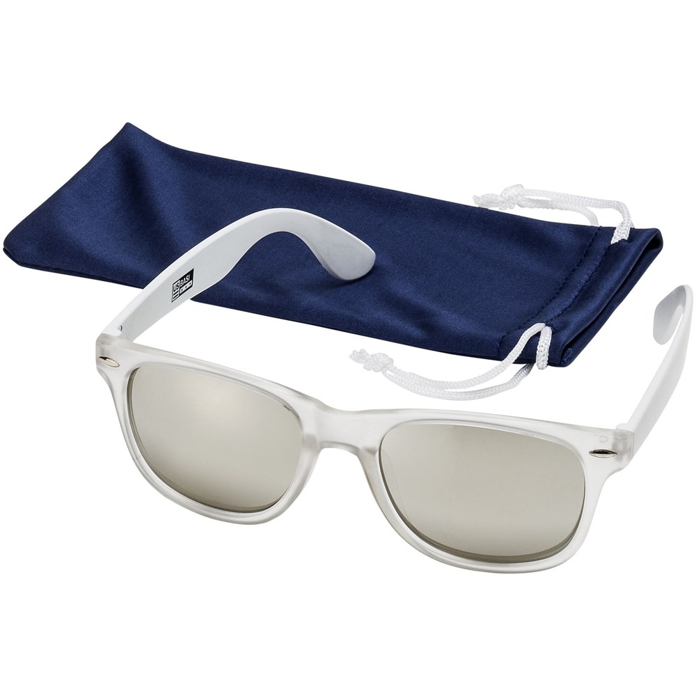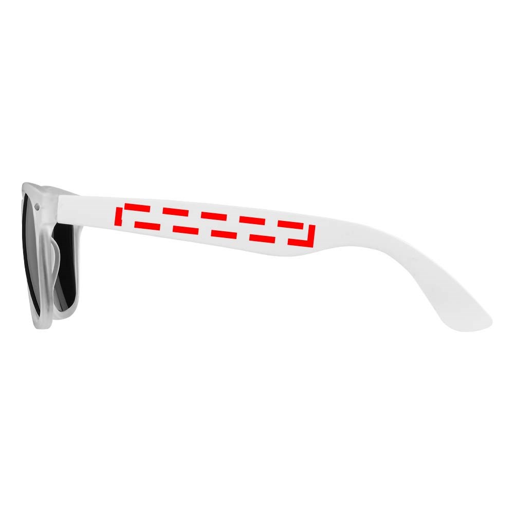 Exclusief ontworpen zonnebril met categorie 3 glazen en UV400 beschermende werking. Polycarbonaat frame en acryl lenzen. Met hoesje van microvezel dat ook te gebruiken is als schoonmaakdoekje. Geleverd in een geschenkverpakking. Conform EN ISO 12312-1.