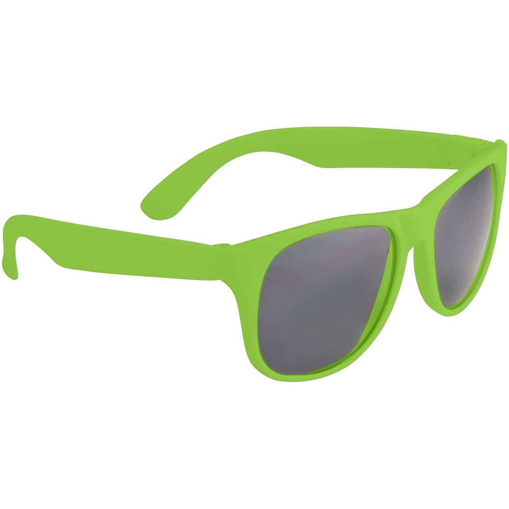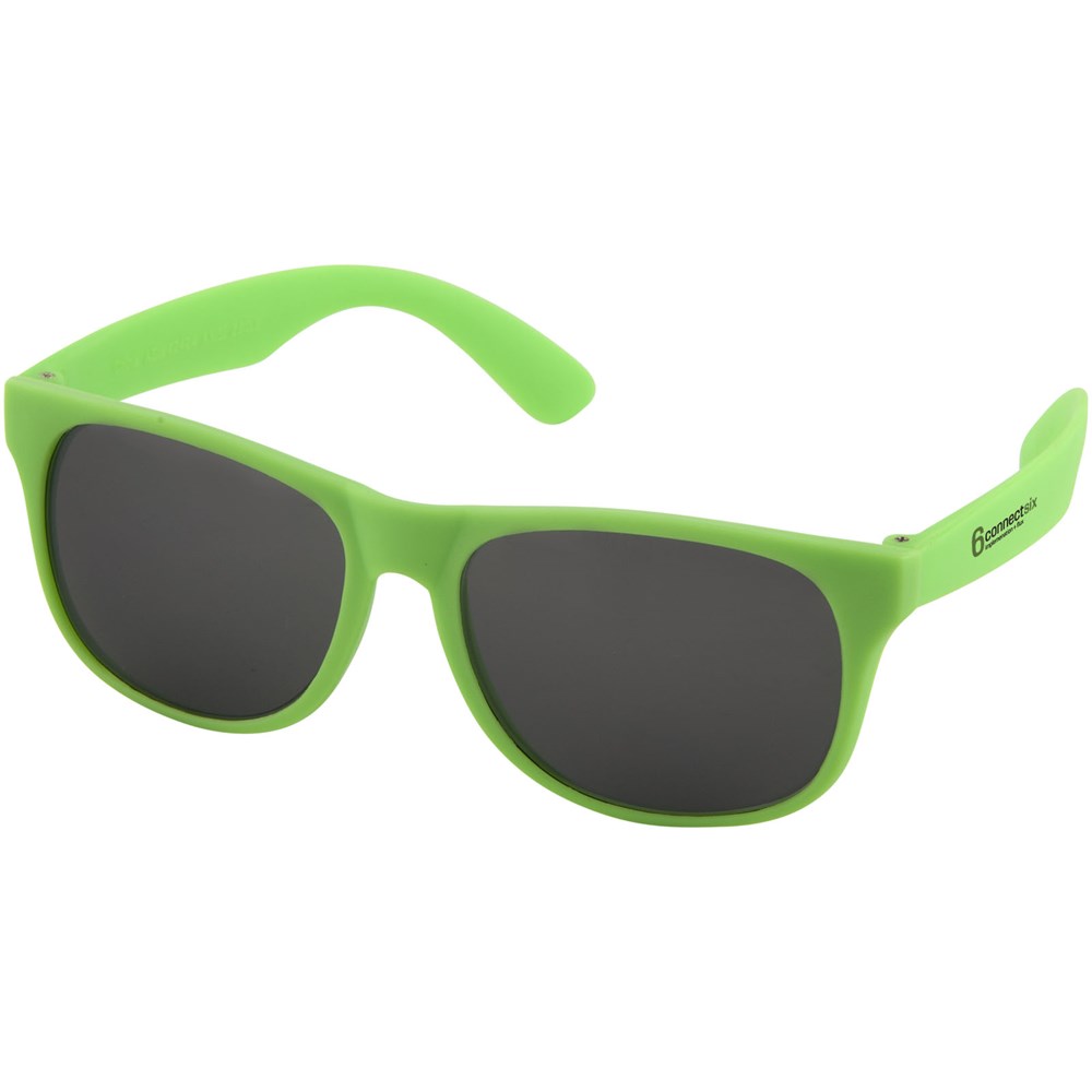 Retro design single color zonnebril met categorie 3 zwarte lenzen. Voldoet aan EN ISO 12312-1 en UV400.