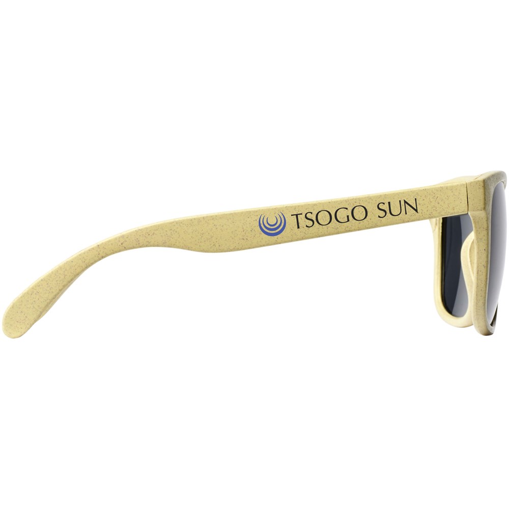 Fris design van zonnebrillen in levendige kleuren voor de ecovriendelijke consument. Het frame is gemaakt van een mengsel van tarwestrovezel en polypropyleen. Voldoet aan EN ISO 12312-1 en UV-400, glazen zijn van klasse 3.