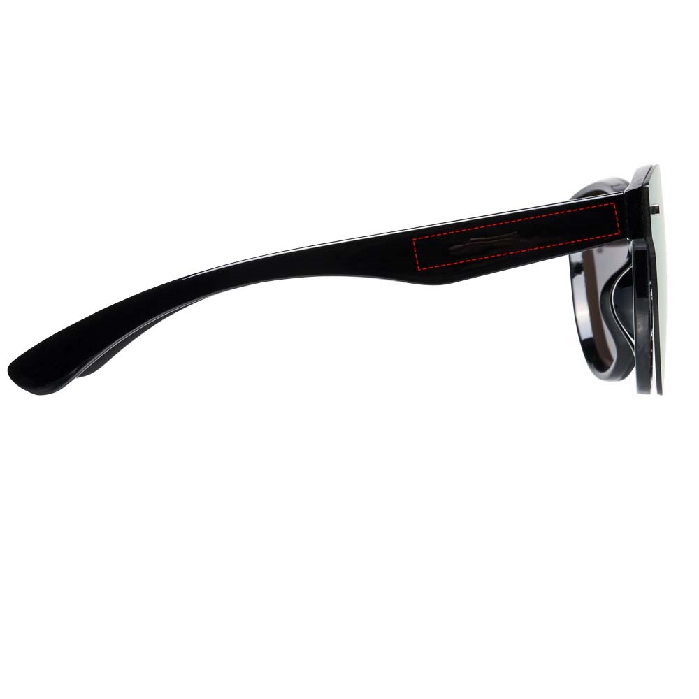 Shield zonnebril met trendy design en spiegelglazen. Voldoet aan EN ISO 12312-1 en UV-400, glazen zijn van klasse 3.