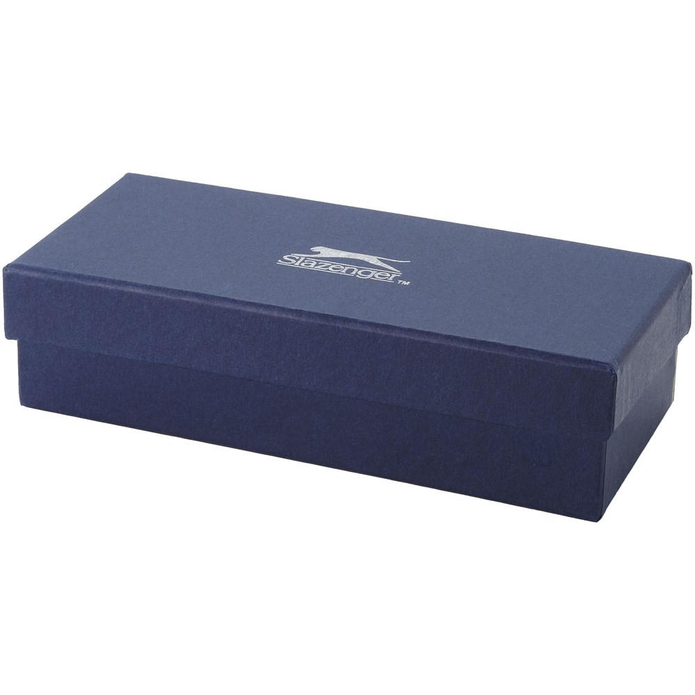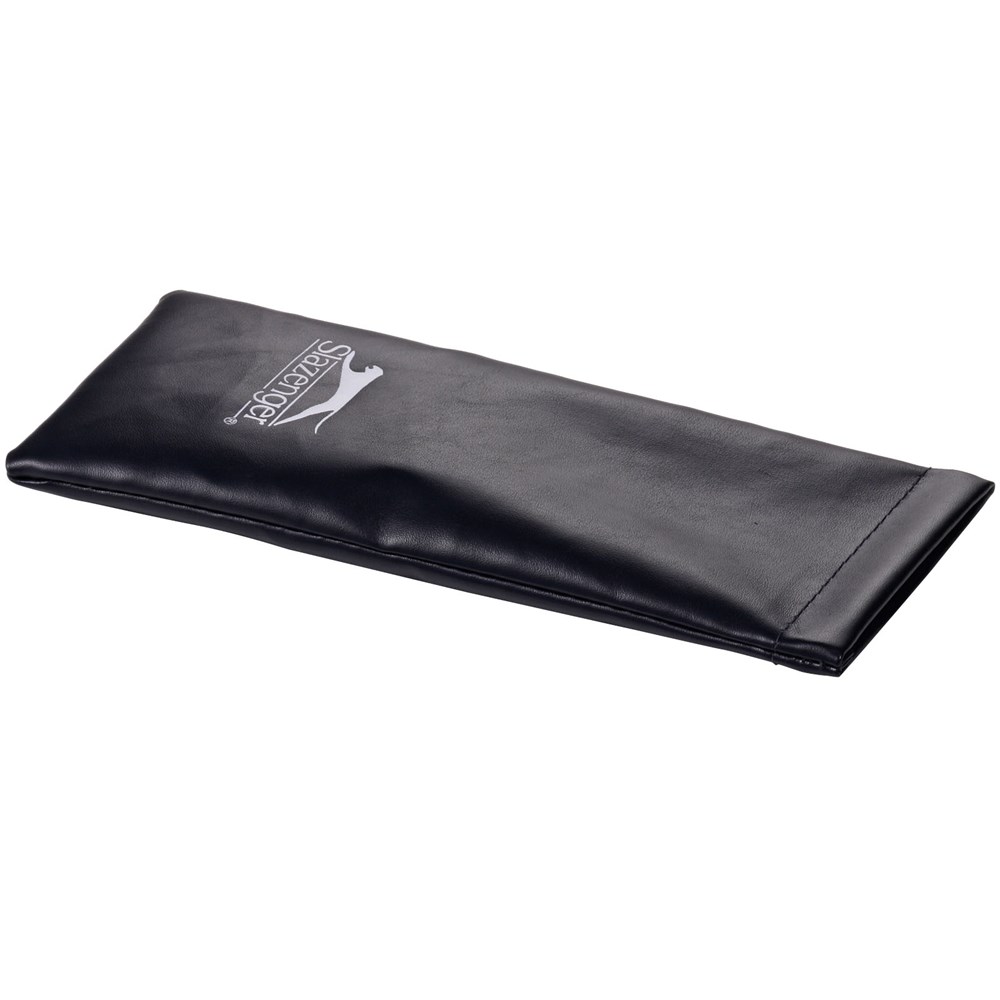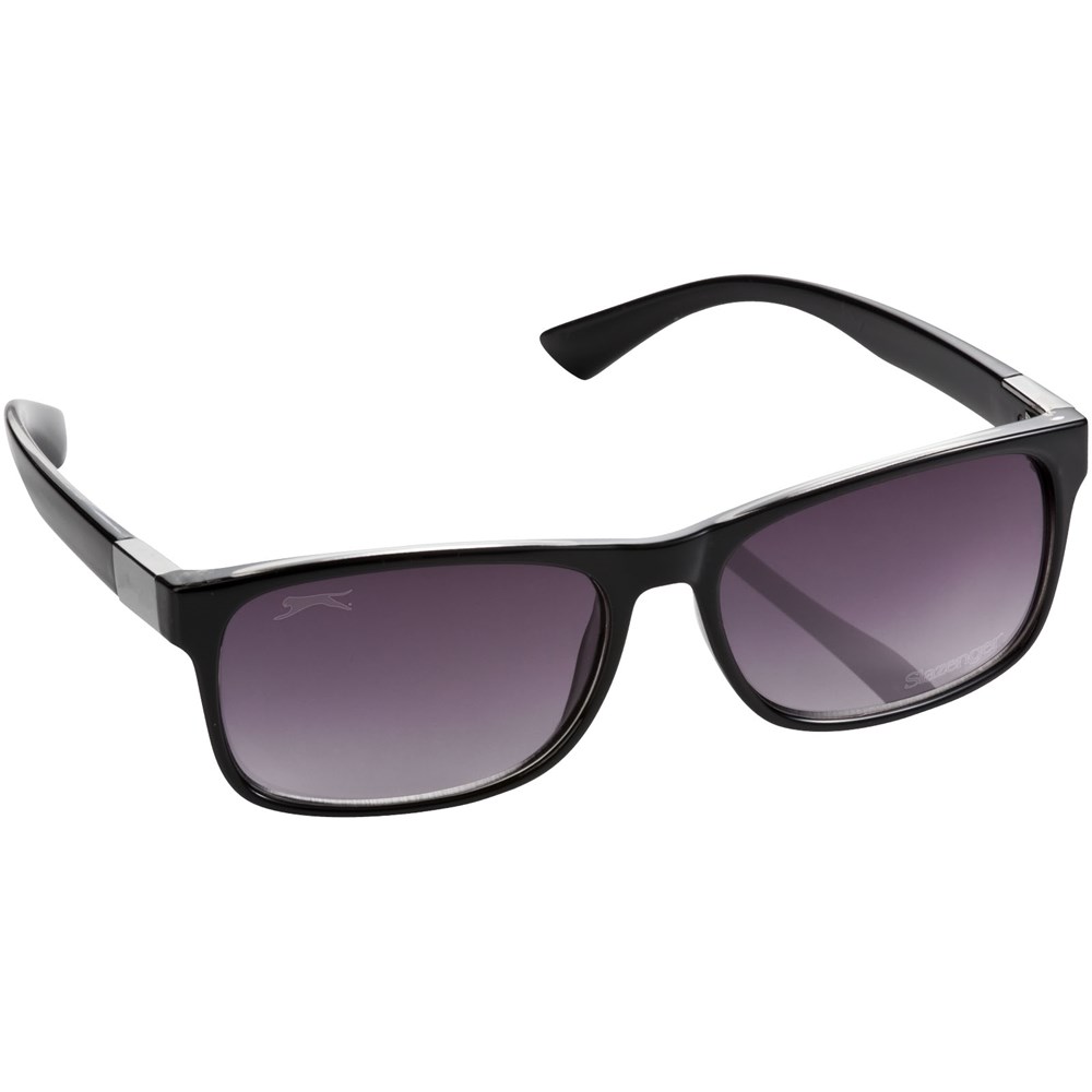 Retro zonnebril met categorie 3 glazen met UV 400 bescherming. Inclusief een imitatieleren etui met metalen veersluiting en reinigingsdoekje. Verpakt in een Slazenger geschenkverpakking. Polycarbonaat montuur en acryl glazen.