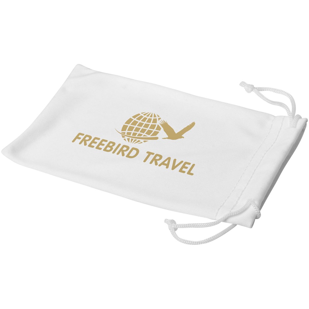 Microvezeltasje met trekkoord om je zonnebril veilig in op te bergen, met je mee te nemen of schoon te maken. Zowel het brede kleurengamma als het grote decoratieoppervlak maken het een perfecte aanvulling op je zonnebril.