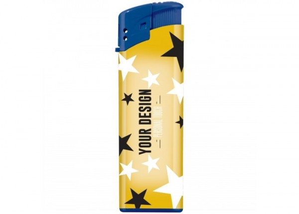 Elektronische aansteker voorzien van custom-made full-colour labelling. Navulbaar en kindveilig. Verkrijgbaar vanaf 5.000 stuks.